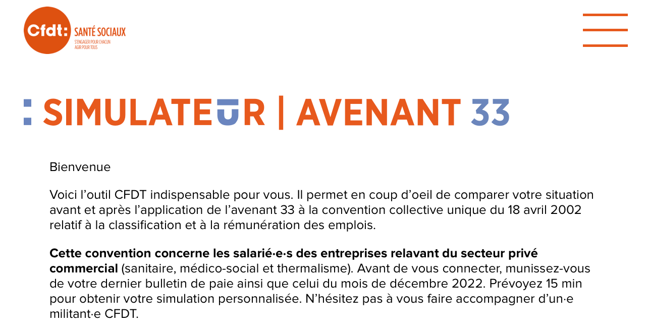 Pour le revoir : https://sante-sociaux.cfdt.fr/webinaireavenant33 (rendez-vous sur la page ci-dessus et allez sur le webiniare N°4)