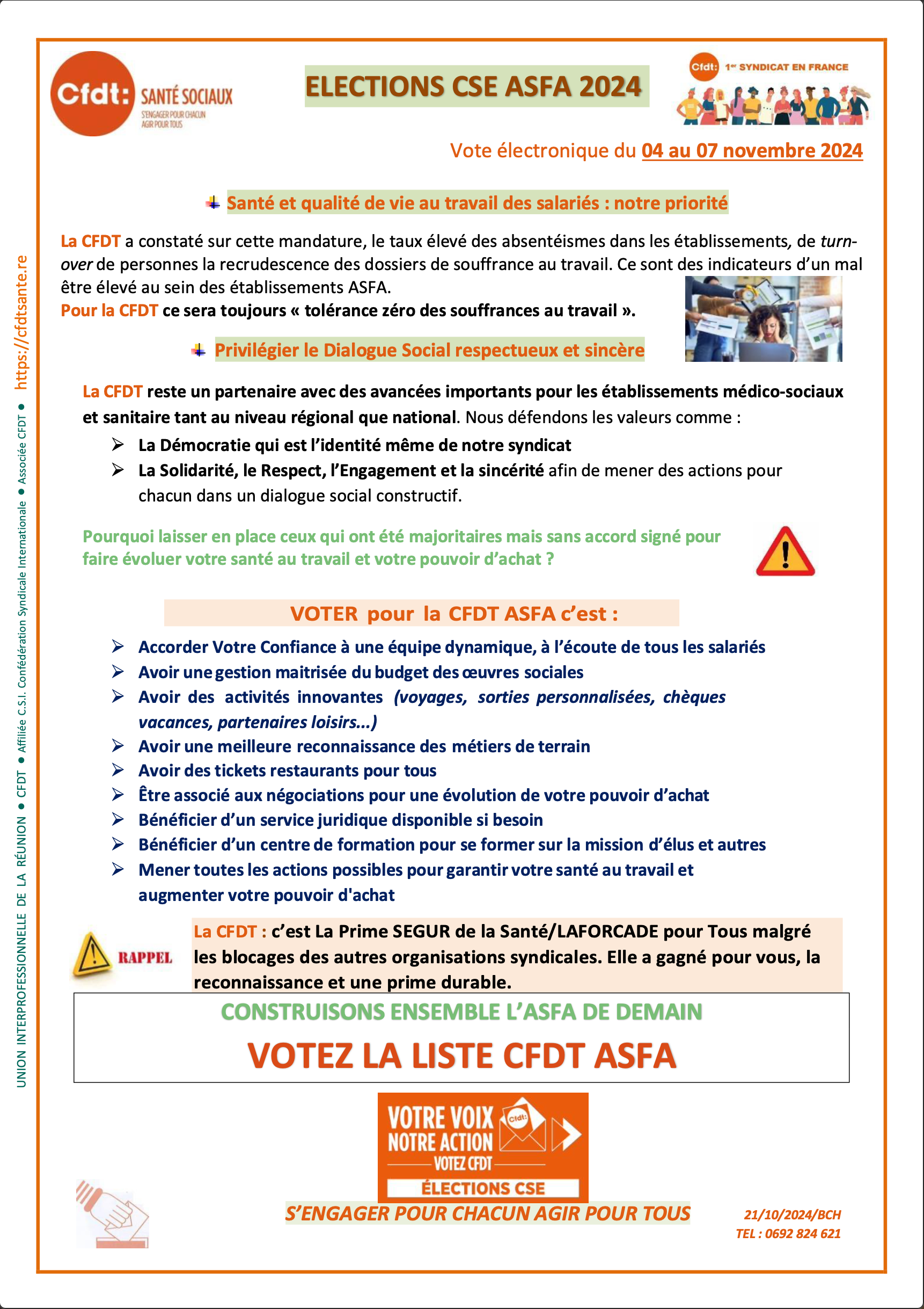 Elections CSE ASFA du 04 au 07 novembre 2024