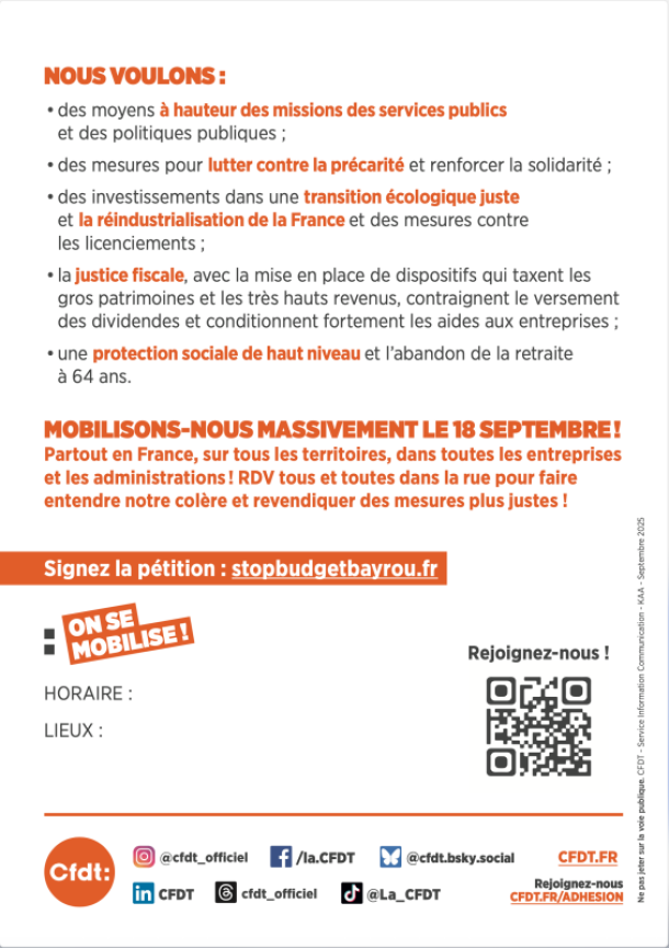 APPEL A LA MOBILISATION le 18 septembre 2025